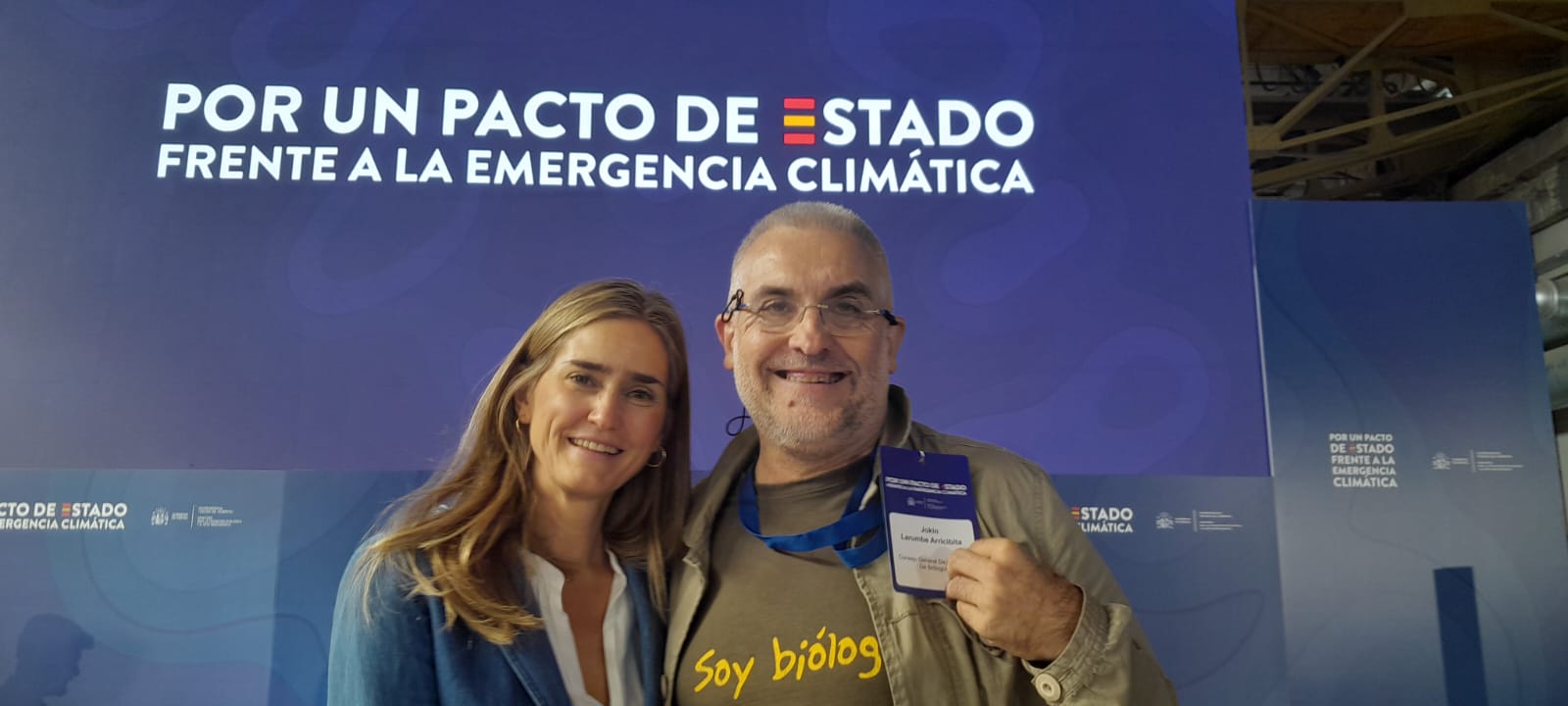 Nuestro compañero Jokin Larumbe, representando al Consejo General de Colegios Oficiales de Biólogos, asistió a la presentación del Pacto de Estado frente a la Emergencia Climática celebrada en Ponferrada los días 13 y 14 de octubre y tuvo ocasión de transmitir a la ministra para la Transición Ecológica y el Reto Demográfico, Sara Aagesen, el interés y la preocupación de los/as biólogos/as por el Cambio Climático.
