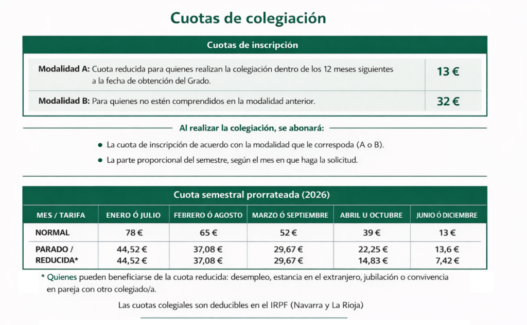Además, las cuotas colegiales son deducibles en el IRPF (Navarra y La Rioja).
